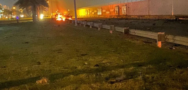 În filmare se vede o explozie după ce o rachetă loveşte maşina în care se aflau generalul iranian Qassem Soleimani, şeful Forţei Quds al Gardienilor Revoluţiei, şi bunul său prieten Abu Mahdi al-Muhandis, ambii ucişi în bombardament.