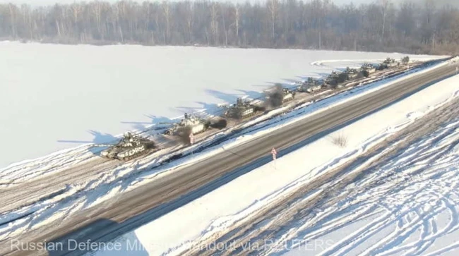 VIDEO: O nouă coloană rusă înaintează spre Kiev, dinspre nord-est. Un tren militar blindat a fost mutat din Crimeea în Ucraina