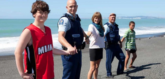 Joshua McQuoid se juca împreună cu doi prieteni pe o plajă din oraşul Napier, când a fost dărâmat de un val puternic şi purtat la peste 150 de metri de ţărm. Un turist german a încercat în zadar să-l scoată pe băiat din apă. Joshua a fost salvat abia după ce patru poliţişti au format un lanţ uman împreună cu alţi oameni care au sărit în ajutor.
