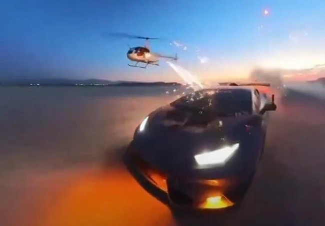 YouTuber arestat pentru o cascadorie cu focuri de artificii trase din elicopter asupra unui Lamborghini. Ce pedeapsă riscă VIDEO
