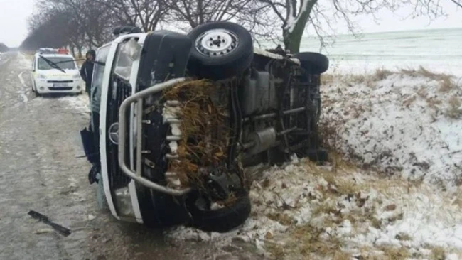 Accident rutier pe traseul Leova-Hânceşti. Un microbuz cu pasageri a derapat de pe şosea şi s-a răsturnat