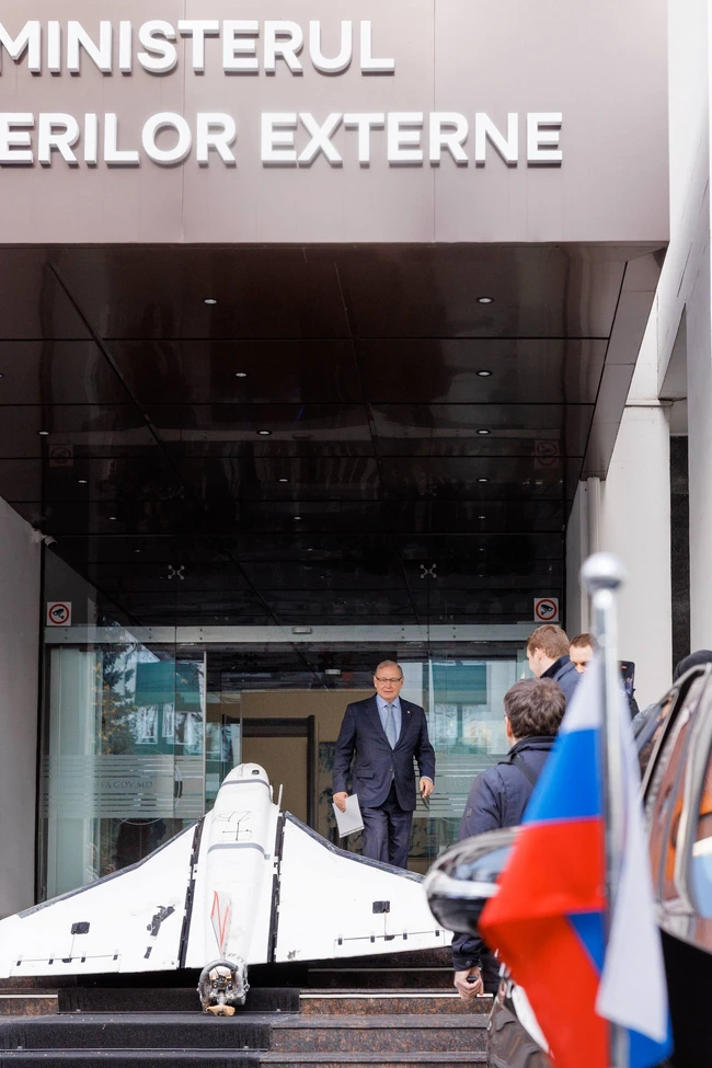 Ambasadorul agreat al Federației Ruse, Oleg Ozerov, a fost convocat miercuri, 26 noiembrie, la ora 14:00 la sediul MAE din centrul Chișinăului, venind alături de alți doi reprezentanți ai misiunii diplomatice, dar fără să știe ce îl aștepta la final. Pe scările clădirii a fost pusă drona rusească.
