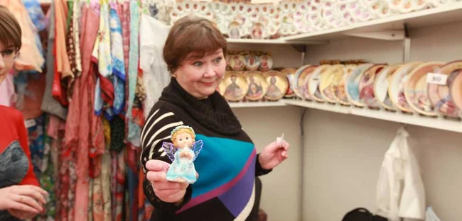 kitschurile, ca magneţi de frigider, farfurii din plastic sau brelocuri înfăţişând chipurile sfinţilor.