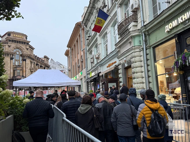 Cozi la secțiile de votare pentru moldovenii din Moscova: votanții au venit cu steagurile Republicii Moldova și ale Rusiei