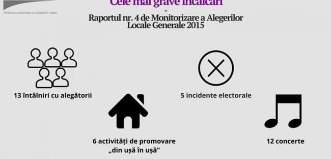 „În total, concurenţii electorali au raportat la CEC în perioada dată venituri în sumă totală de 17,77 mln. lei. Majoritatea cheltuielilor raportate de către concurenţii electorali au fost pentru publicitate – 71% din total. Nici un concurent electoral în perioada de raportare nu a reflectat cheltuieli la capitolul „salariile personalului angajat temporar”. Totodată, cele mai mari cheltuieli raportate, pentru întreaga campanie electorală a alegerilor locale 2015, au fost prezentate de PDM – 23,68 milioane lei, ceea ce constituie 39,98% din plafonul maxim stabilit de CEC. Pe locul doi se situează PSRM – 14,53 mln. lei (24,53%) şi, respectiv, pe trei - PPPN cu 11,63 mln. lei (19,63%)”, susţine Cornelia Călin, analistul financiar al Misiunii de Observare Promo-LEX.