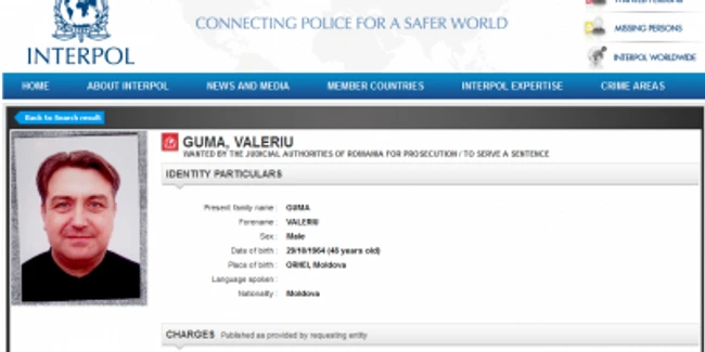 0Deputatul democrat Valeriu Guma este dat în urmărire generală de către Interpol şi Poliţia Română. Potrivit site-urilor celor două instituţii, oficialul moldovean este căutat de oamenii legii, după ce luna trecută a fost condamnat definitiv de Curtea Supremă de la Bucureşti la patru ani de închisoare pentru corupţie.