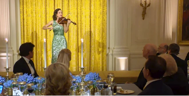 Înainte de recital, Trump a prezentat-o cu entuziasm pe artista originară din Chișinău: „Avem în această seară un program artistic de excepție, la fel de bun cum nu veți găsi nicăieri altundeva în lume. O avem pe cea mai bună violonistă din lume. Am organizat aici un eveniment acum aproximativ două luni, ea a cântat alături de Andrea Bocelli chiar în această sală și a fost incredibil. Și când m-am gândit la Cina Guvernatorilor, am spus că trebuie s-o invităm înapoi. Este aici în această seară. Și, bineînțeles, îi avem pe acești muzicieni militari geniali, care sunt la fel de buni ca oricare alți muzicieni din lume”.