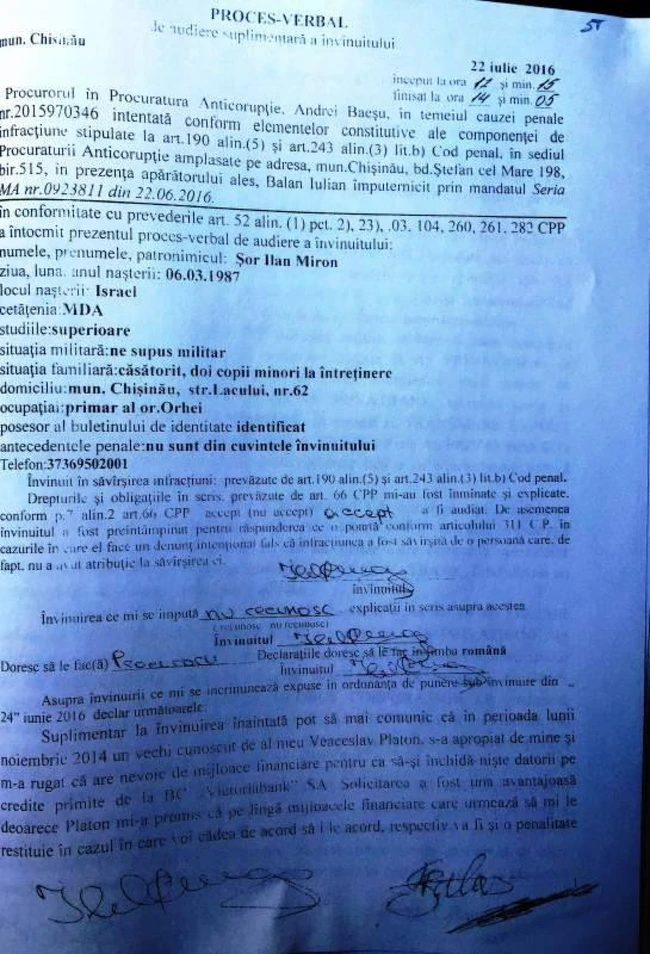 0Primarul de Orhei, Ilan Shor, a scris un denunţ împotriva omului de afaceri din Republica Moldova, Veaceslav Platon. Portalul de ştiri omg.md a făcut public procesul verbal în care Ilan Shor depune mărturii.