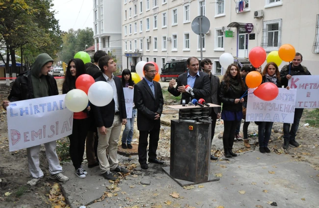 FOTO Socialiştii i-au amintit primarului Chişinăului, Dorin Chirtoacă, de promisiunile neonorate şi l-au invitat să se plimbe pe strada pietonală Diordiţa