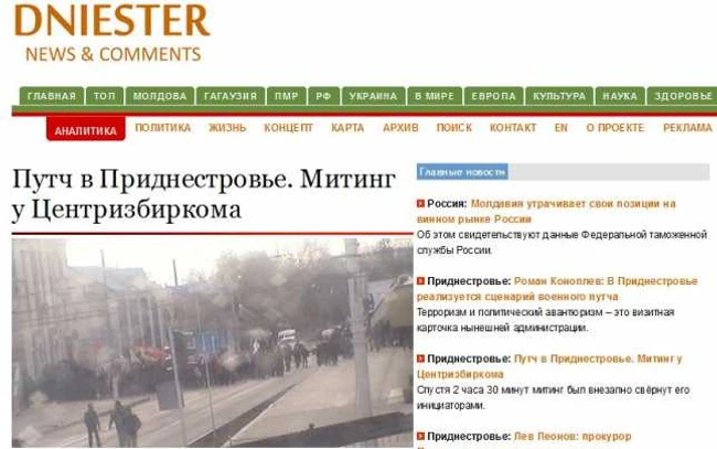 Pagina dniester.ru anunţă că ”în regiunea transnistreană are loc un puci”, referindu-se la protestul din faţa aşa-zisei autorităţi electorale centrale. Potrivit site-ului, la miting participă oameni de pe întreg teritoriul regiunii separatiste, fiind chemaţi prin intermediul reţelelor de socializare de către susţinătorii lui Şevciuk. Aceştia contestă legalitatea rezultatelor alegerilor nerecunoscute desfăşurate duminică şi cer renumărare voturilor şi verificarea listelor electorale.