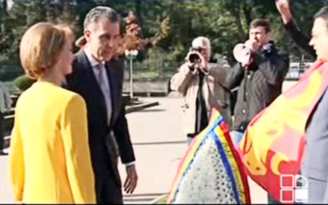 FOTO VIDEO Principesa Margareta a României şi principele Radu au fost huiduiţi de comunişti la monumentul lui Ştefan cel Mare din Chişinău
