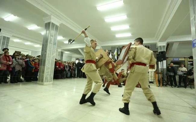 Lăncieri, soldaţi înarmaţi cu săbii şi paloşe, simpli ţărani înarmaţi cu bâte şi topoare au evoluat în foaierul muzeului, spre deliciul zecilor de copii veniţi să vadă acest episod istoric, pe viu.