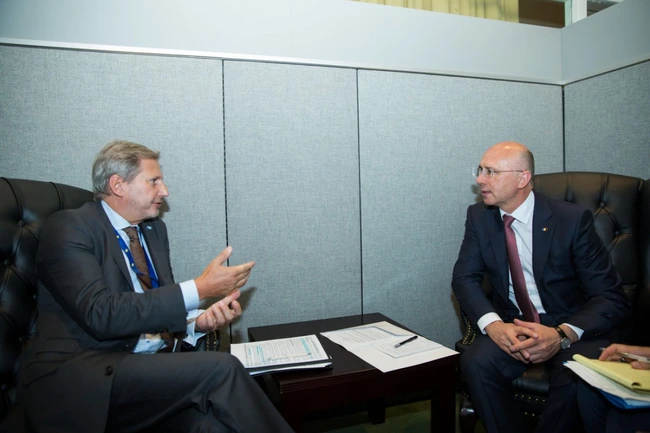 0Uniunea Europeană va continua să sprijine autorităţile de la Chişinău în promovarea politicilor orientate spre beneficiul cetăţenilor. Declaraţia a fost făcută de comisarul european pentru politica de vecinătate şi negocieri de extindere, Johannes Hahn, în cadrul unei întrevederi cu prim-ministrul Pavel Filip, în marja sesiunii Adunării Generale ONU de la New York, transmite IPN.