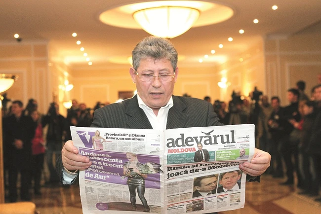 0Mihai Ghimpu răsfoieşte primul număr al ziarului „Adevărul“