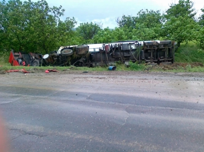 Potrivit Poliției, șoferul a intrat într-o curbă periculoasă și nu a reușit să mențină autocisterna care s-a răsturnat. Din fericire, petrolul nu s-a scurs, iar un incendiu a fost evitat.