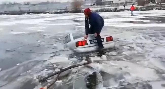 Rep. Moldova. Un tânăr a ajuns cu maşina sub gheaţă după ce s-a aventurat să conducă automobilul pe un lac îngheţat VIDEO