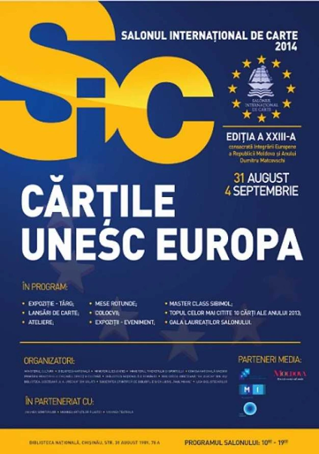 0Ediţia din acest an a Salonului Internaţional de Carte este consacrată integrării europene a Republicii Moldova, cu genericul: „Cărţile Unesc Europa“, şi Anului Dumitru Matcovschi. Cea de-a XXIII-a ediţie va fi inaugurată astăzi, de sărbătoarea „Limba Noastră“, şi se va desfăşura până pe 4 septembrie, la Biblioteca Naţională.