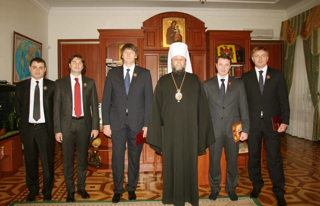 Alexandru Gusev, președintele companiei Moldovagaz, Cuiumju Constantin, directorul Chişinău-Gaz, Alexandru Arabadji, inginer-șef la Chişinău-Gaz, precum şi consilierul prezidențial Cramarenco Eugen au fost decorați astăzi de Mitropolitul Moldovei Vladimir.