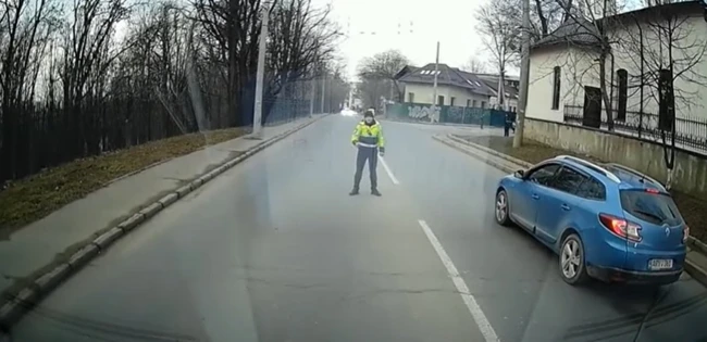 Situaţie jenantă în Chişinău. O ambulanţă cu girofar pornit, oprită de un poliţist pentru ca să poată trece coloana oficială VIDEO