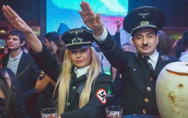 0Salutul şi uniforma nazistă, precum şi svastica au servit drept costumaţie pentru câţiva tineri care au ales să sărbătorească Halloween-ul într-un club fiţos din centrul Capitalei.