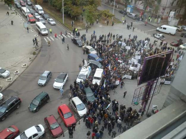 Societatea Vânătorilor şi Pescarilor din Republica Moldova au organizat un protest la Ministerul Mediului. FOTO Doina Grecu