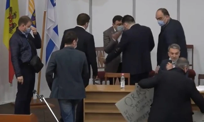 0Şedinţa Consiliului municipal Chişinău de vineri, 2 aprilie, s-a lăsat cu scandal. Proiectul de decizie cu privire la securizarea şi dezvoltarea zonei Centru – Nucleul Istoric al oraşului, a fost aprobat cu votul a 28 de aleşi locali, în timp ce fracţiunea PAS a protestat, ieşind cu pancarte la tribună, înainte ca proiectul să fie prezentat. Consilierii municipali s-au înjurat reciproc, ajungându-se şi la îmbrânceli, transmite IPN.