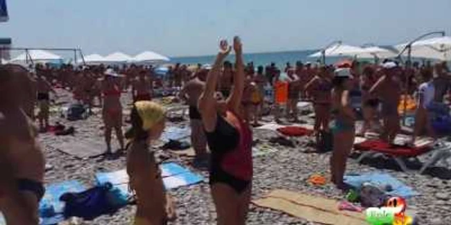 0Patriotismul le dă bătăi de cap ruşilor. Mai nou, acesta îi împiedică să se bronzeze în linişte. Pe internet a apărut o secvenţă video realizată pe o plajă din staţiunea Soci din Federaţia Rusă în care la boxele uneia dintre terase răsună brusc imnul ţării. Din respect pentru patria lor, din obligaţie sau ca să nu fie priviţi lung de ceilalţi, oamenii se ridică imediat în picioare ca să onoreze imnul statului.
