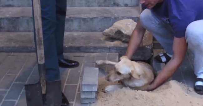 0Un câine a fost îngropat de viu de nişte muncitori în timpul unor lucrări de reamenajare a faţadei unui bloc din oraşul Voronej, Rusia. Locuitorii blocului afirmă că de sub pavajul proaspăt instalat se auzea un lătrat înfundat. Pentru că autorităţile locale nu au reacţionat la solicitările locatarilor, aceştia au scos cărămizile şi au salvat câinele pe nume Belka (veveriţă).