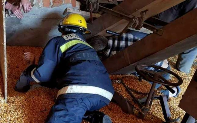 Potrivit Inspectoratului General pentru Situaţii de Urgenţă, salvatorilor le-a luat 20 de minute ca să-l scoată. Bărbatul era acoperit parţial cu cereale, fiindu-i blocate picioarele. Preluat de medici, acesta a fost internat în Secţia traumatologie. Are mai multe traumatisme, dar viaţa nu îi este în pericol.