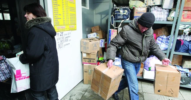 Forfotă mare în ajun de Sărbători la punctele de colectare şi primire a pachetelor din Capitală. Unul este chiar în curtea Casei Presei. Aici vin microbuze ce fac naveta în Italia. Ieri la amiază, vreo zece oameni stăteau la coadă, aşteptând să-şi ia coletele de la cei apropiaţi şi, la rândul lor, să le trimită acestora genţi cu bunătăţi de acasă.