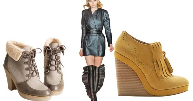 Designerii recomandă cizmele peste genunchi, în culorile toamnei, de la ocru la burgundy sau maro. Tocul de 15 cm este nelipsit, la fel platforma ascunsă, cataramele metalice, pielea de piton, şireturile şi cureluşele fine, decorative.