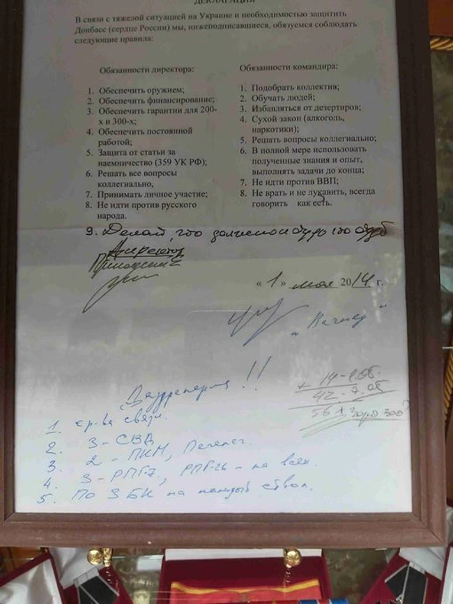 Documentul este semnat la 1 mai 2014 de Evgheni Prigojin în calitate de „director”, respectiv fondatorul companiei, Dmitri Utkin, în calitate de „comandant”.