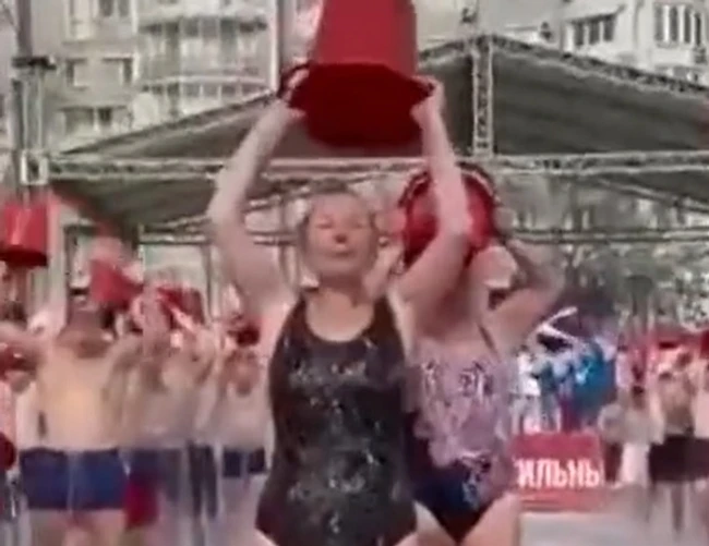 Aproximativ 150 de persoane, de la adolescenți la pensionari, și-au pus găleți cu apă rece pe cap.