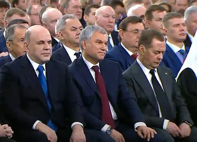 Pe rețelele de socializare au circulat imagini cu Medvedev care ar fi adormit în timpul discursului ținut de președintele rus Vladimir Putin.