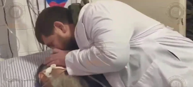 Pe lângă mesajul din descrierea postării, Rothrock a postat şi un clip video în care liderul cecen îl mângâie şi-l pupă pe Geremeev, care se află pe patul de spital.
