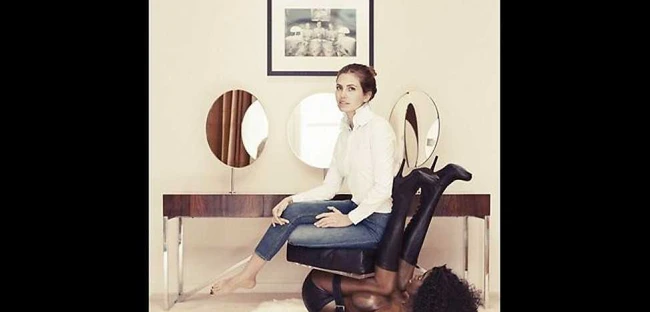 0Iubita oligarhului rus Roman Abramovici, Daşa Zukova, a fost fotografiată în cadrul unui material pentru un site de fashion în timp ce era aşezată pe un scaun creat să arate precum o femeie de culoare, pe jumătate dezbrăcată.