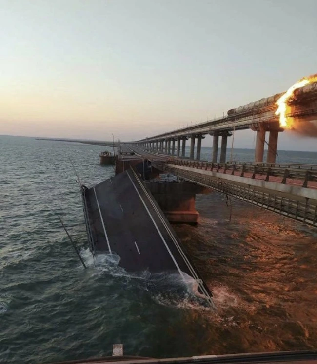 Comitetul de anchetă rus a declarat sâmbătă, la fel ca şi Agenţia Naţională Antiteroristă (NAC) că, potrivit informaţiilor preliminare, un camion a explodat în această dimineaţă pe partea rutieră a Podului Crimeei, în zona Taman a peninsulei Crimeea, provocând incendierea a şapte cisterne cu combustibil dintr-o garnitură de tren ce se îndrepta spre peninsulă.