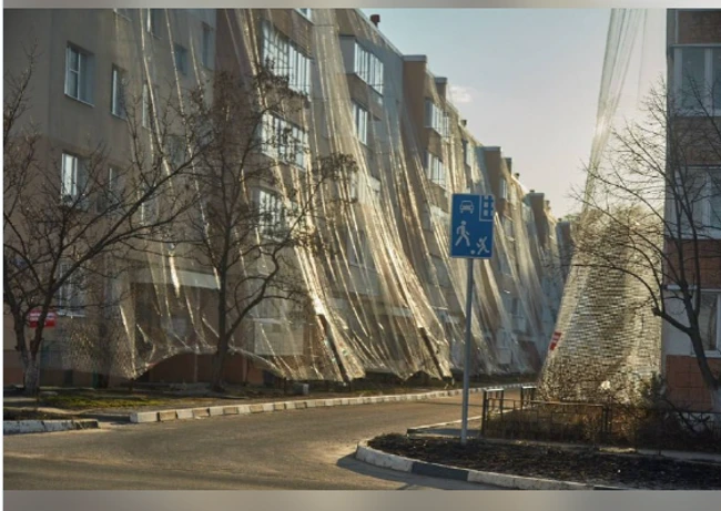 Foto Rușii își învăluie blocurile din regiunile de graniță în plase anti-drone. Reacția ucrainenilor: „Oare este un soi de barieră magică?”