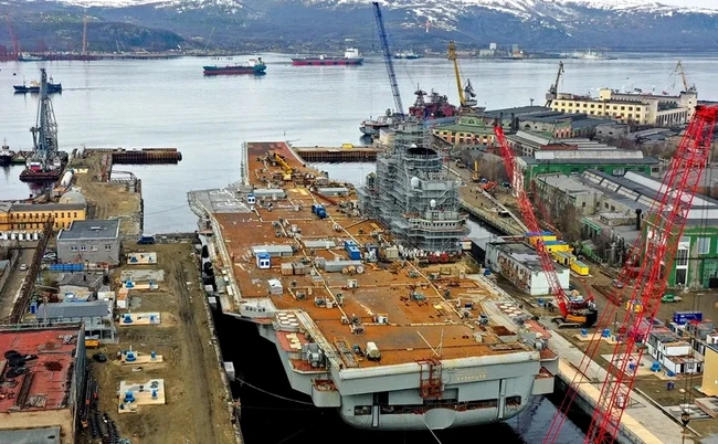 „Amiralul Kuznetsov” se află în reparații din anul 2017, iar în timpul lucrărilor a luat foc de mai multe ori și s-a scufundat împreună cu docul uscat. Modernizarea amiralului Kuznetsov, al cărui cost a fost estimat la 300 de milioane de euro, a constat în înlocuirea cazanelor, refacerea pistei și dotarea acesteia cu noi echipamente electronice de luptă și comunicații, precum și cu sisteme moderne de apărare antiaeriană. Informațiile militare ucrainene au raportat că lucrările durează așa mult pentru că nava a suferit o coroziune semnificativă a cocii, care este extrem de dificil de reparat.