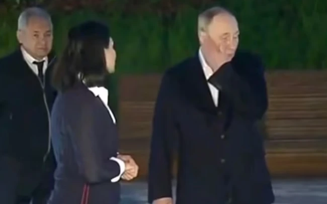Liderul de la Kremlin este văzut vorbind cu fiica ministrului rus al Apărării Serghei Şoigu, când ţânţarii au început să-l deranjeze în zona feţei.