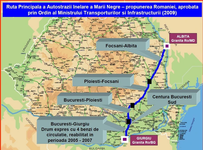 România a aprobat, prin Ordin al Ministrului Transporturilor, ca ruta principală a Autostrăzii Mării negre, traseulGiurgiu – Bucureşti – Ploieşti – Buzău – Focşani – Albiţa, respectiv ca rută secundară Bucureşti – Constanţa.