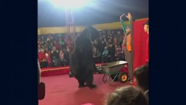 VIDEO Momentul în care un urs de circ îşi atacă dresorul, la doi paşi de publicul îngrozit