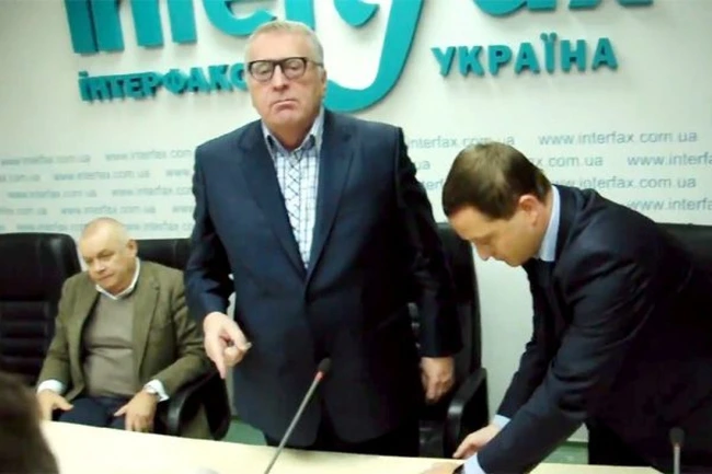 Ultranaţionalistul rus Vladimir Jirinovschi a avut parte de o primire „acră“ în Ucraina. O jurnalistă a aruncat cu varză murată în deputatul rus, în timpul unei conferinţe de presă.