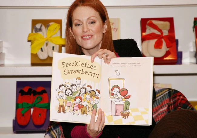 Cartea „Freckleface Strawberry” este din anul 2007 și spune o poveste despre „o fetiță cu pistrui”.