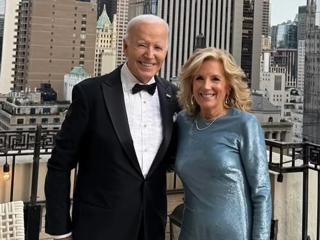 Aceasta este a doua apariție după plecarea de la Casa Albă, scrie Daily Mail. Biden a îmbrăcat un smoching, iar Jill a purtat o rochie elegantă de culoare albastru verziu. Înainte de spectacol, cei doi au făcut o poză pe un acoperiș din Manhattan.
