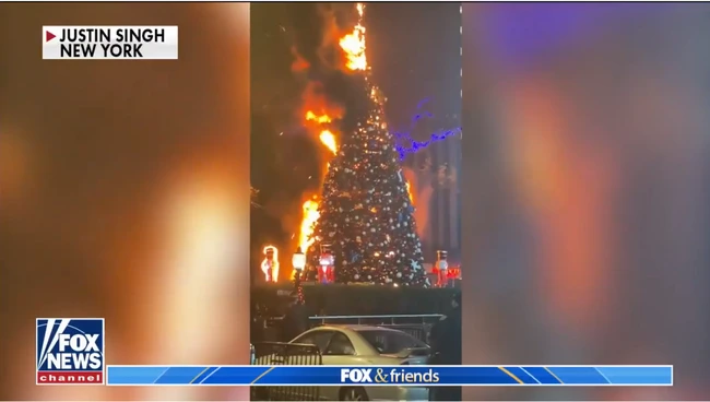 Bradul de Crăciun din faţa sediului postului TV Fox News a fost incendiat VIDEO