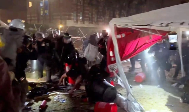 Aceștia au înconjurat campusul și au început să dea jos baricadele ridicate de protestatari în tabără.