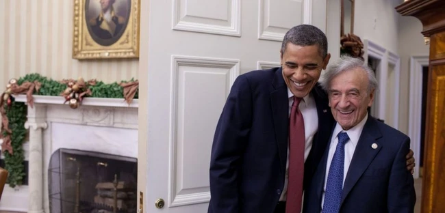Barack Obama a legat o relaţie de prietenie cu Elie Wiesel încă de când era senator. Iar în „Pământul Făgăduinţei”, fostul preşedinte american povesteşte vizita pe care a făcut-o alături de Elie Wiesel şi de cancelarul german Angela Merkel la fostul lagăr de concentrare de la Buchenwald în iunie 2009.