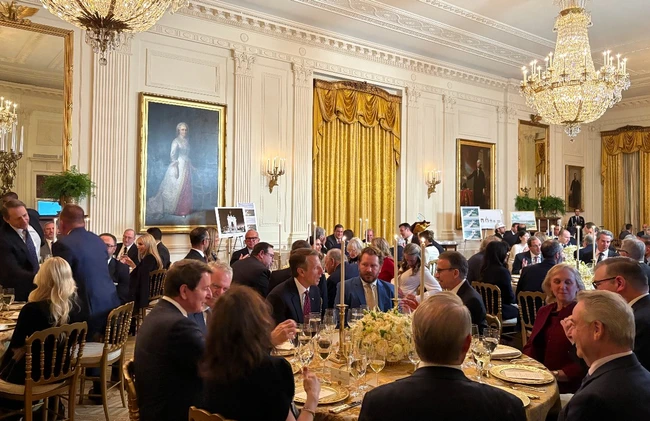 Donald Trump a organizat evenimentul pentru a le mulțumi personal sponsorilor generoși care contribuie la ridicarea noii săli de bal, aflate în construcție în incinta Casei Albe. Printre invitați s-au numărat reprezentanți ai unor giganți din domeniul tehnologiei, precum Amazon, Apple, Meta, Google, Microsoft și Palantir, dar și ai companiei de apărare Lockheed Martin, potrivit presei americane care a obținut lista oficială a invitaților.