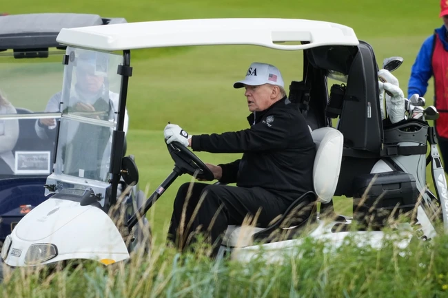 Trump a petrecut weekendul jucând mai multe runde de golf la clubul său din Turnberry, Scoția, unul dintre cele mai prestigioase terenuri de golf din lume. Jucătorul profesionist Bryson DeChambeau a declarat recent că și-ar dori ca Turnberry să găzduiască în viitor British Open.